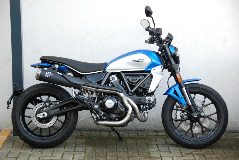 Brand New Unregistered Scrambler Icon with free Termignoni high level exhaust (worth £2200), Sparking Blue bodywork and low bars. One bike only and finance available subject to status at 7.9% APR. Call for more details.